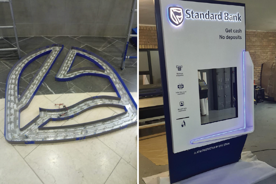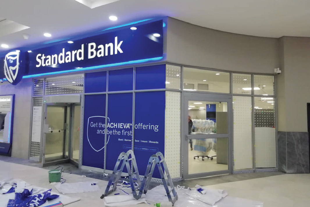 We supported Standard Bank with extensive internal and external branding solutions across multiple locations. Our work included manufacturing and installing lightboxes, privacy screens, fabricated signage, and way-finding systems designed to create consistency across the bank’s retail network.